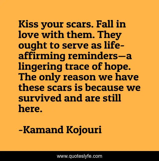 "Kamand Kojouri Quotes." Quoteslyfe.com, 2025. Fri. 05 Dec. 2025. <https://www.quoteslyfe.com/quote/Kiss-your-scars-Fall-in-love-with-20389>.