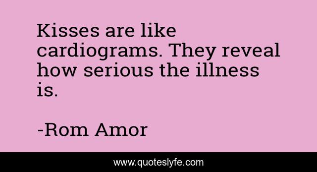 This page presents the quote "Kisses are like cardiograms. They reveal how serious the illness is.". Author of this quote is Rom Amor. This quote is about illness, kisses, kiss,.