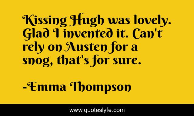 This page presents the quote "Kissing Hugh was lovely. Glad I invented it. Can't rely on Austen for a snog, that's for sure.". Author of this quote is Emma Thompson. .