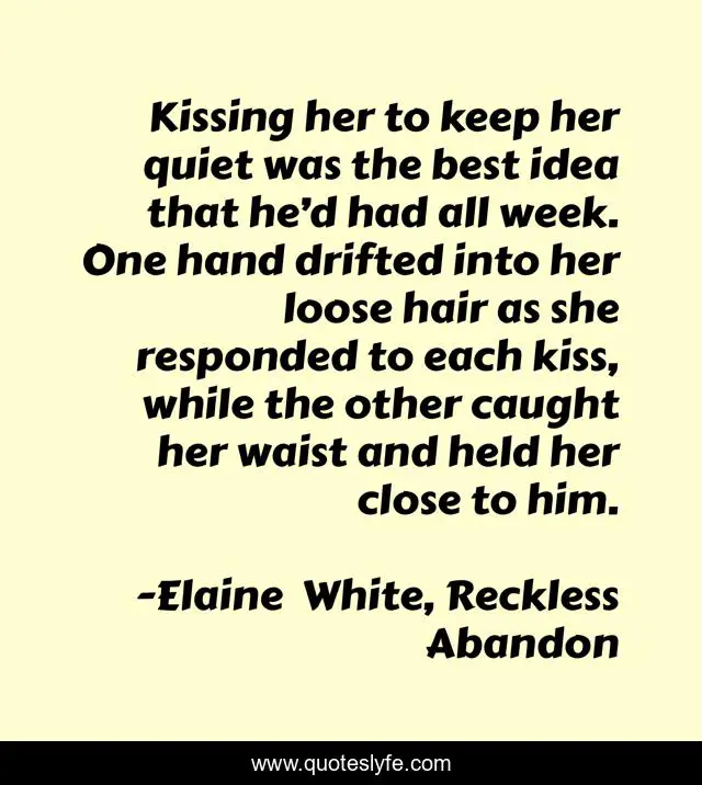 "Elaine White, Reckless Abandon Quotes." Quoteslyfe.com, 2025. Mon. 08 Dec. 2025. <https://www.quoteslyfe.com/quote/Kissing-her-to-keep-her-quiet-was-178532>.