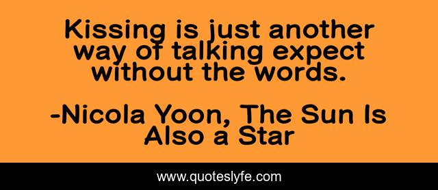 "Nicola Yoon, The Sun Is Also a Star Quotes." Quoteslyfe.com, 2025. Sat. 06 Dec. 2025. <https://www.quoteslyfe.com/quote/Kissing-is-just-another-way-of-talking-251825>.