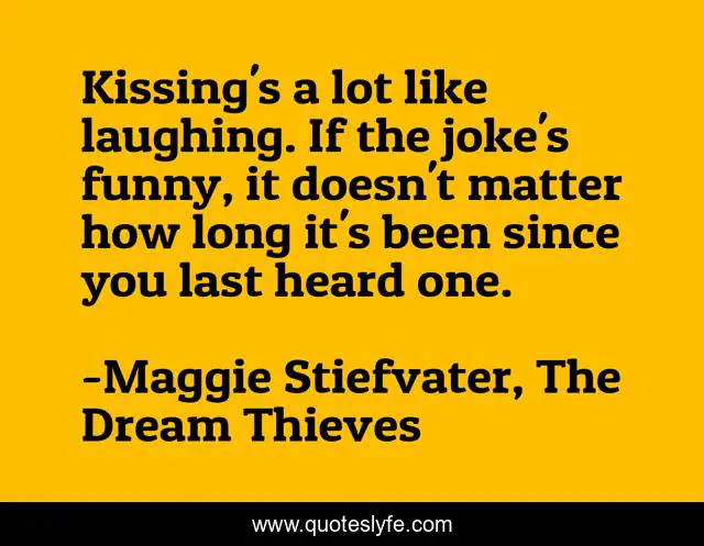 This page presents the quote "Kissing's a lot like laughing. If the joke's funny, it doesn't matter how long it's been since you last heard one.". Author of this quote is Maggie Stiefvater, The Dream Thieves. This quote is about kissing, laugh,.