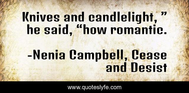 "Nenia Campbell, Cease and Desist Quotes." Quoteslyfe.com, 2025. Tue. 09 Dec. 2025. <https://www.quoteslyfe.com/quote/Knives-and-candlelight-he-said-how-romantic-188908>.