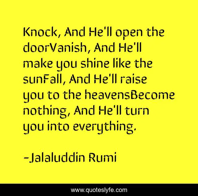 "Jalaluddin Rumi Quotes." Quoteslyfe.com, 2025. Sat. 06 Dec. 2025. <https://www.quoteslyfe.com/quote/Knock-And-He-ll-open-the-doorVanish-29579>.