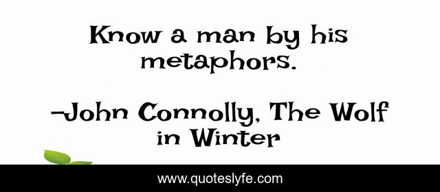 This page presents the quote "Know a man by his metaphors.". Author of this quote is John Connolly, The Wolf in Winter. This quote is about metaphors, man,.