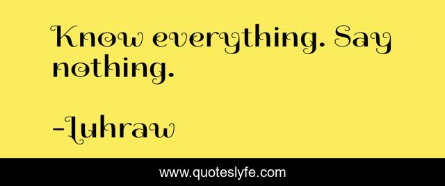 "Luhraw Quotes." Quoteslyfe.com, 2025. Mon. 08 Dec. 2025. <https://www.quoteslyfe.com/quote/Know-everything-Say-nothing-243828>.