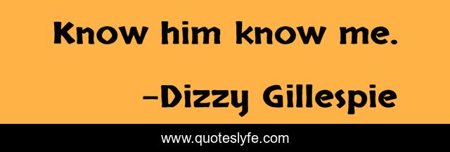 This page presents the quote "Know him know me.". Author of this quote is Dizzy Gillespie. This quote is about self, knowledge,.
