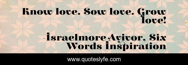 "Israelmore Ayivor, Six Words Inspiration Quotes." Quoteslyfe.com, 2025. Tue. 09 Dec. 2025. <https://www.quoteslyfe.com/quote/Know-love-Sow-love-Grow-love-29209>.