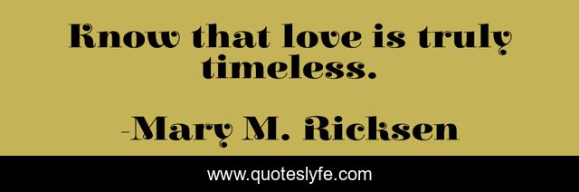 "Mary M. Ricksen Quotes." Quoteslyfe.com, 2025. Sat. 06 Dec. 2025. <https://www.quoteslyfe.com/quote/Know-that-love-is-truly-timeless-749>.