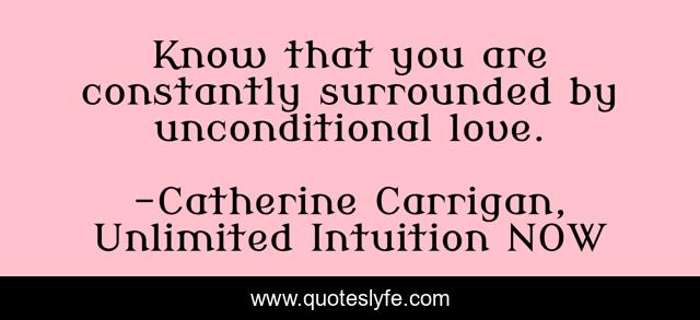 This page presents the quote "Know that you are constantly surrounded by unconditional love.". Author of this quote is Catherine Carrigan, Unlimited Intuition NOW. .