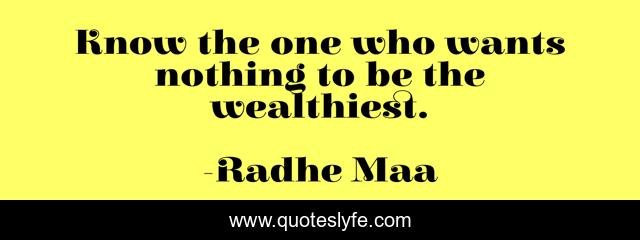 This page presents the quote "Know the one who wants nothing to be the wealthiest.". Author of this quote is Radhe Maa. This quote is about spiritual, radhe-guru-maa, spiritual-leader, radhe-maa, spiritual-sayings, wisdom, quotes-and-saying, inner-peace, spiritual-insights,.