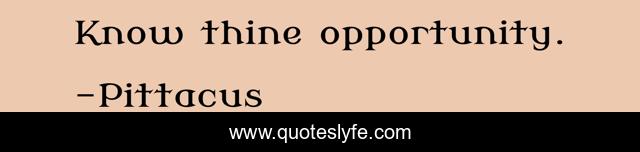 This page presents the quote "Know thine opportunity.". Author of this quote is Pittacus. .