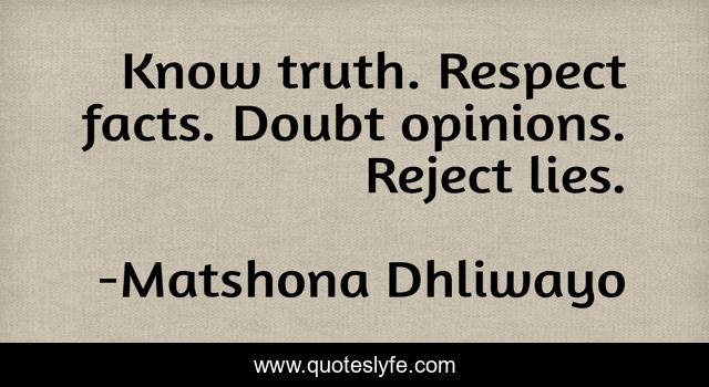 "Matshona Dhliwayo Quotes." Quoteslyfe.com, 2025. Tue. 09 Dec. 2025. <https://www.quoteslyfe.com/quote/Know-truth-Respect-facts-Doubt-opinions-Reject-98007>.