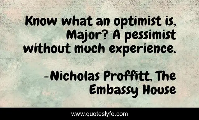 "Nicholas Proffitt, The Embassy House Quotes." Quoteslyfe.com, 2025. Sat. 06 Dec. 2025. <https://www.quoteslyfe.com/quote/Know-what-an-optimist-is-Major-A-181050>.