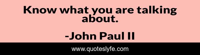 This page presents the quote "Know what you are talking about.". Author of this quote is John Paul II. This quote is about knowledge, language,.
