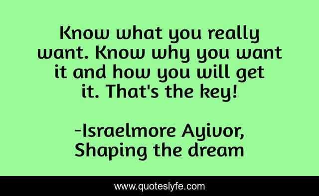 "Israelmore Ayivor, Shaping the dream Quotes." Quoteslyfe.com, 2025. Sat. 06 Dec. 2025. <https://www.quoteslyfe.com/quote/Know-what-you-really-want-Know-why-129607>.