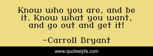 This page presents the quote "Know who you are, and be it. Know what you want, and go out and get it!". Author of this quote is Carroll Bryant. This quote is about life, personal-growth, philisophical, life-lessons, personal-development, philospohy,.
