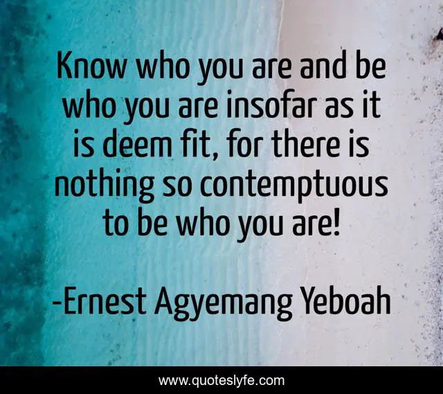 This page presents the quote "Know who you are and be who you are insofar as it is deem fit, for there is nothing so contemptuous to be who you are!". Author of this quote is Ernest Agyemang Yeboah. This quote is about be-yourself, be-who-you-are, wisdom, know-who-you-are, inspirational, enthusiasm,.