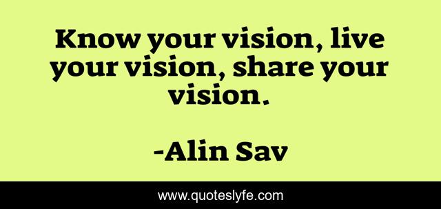 This page presents the quote "Know your vision, live your vision, share your vision.". Author of this quote is Alin Sav. .