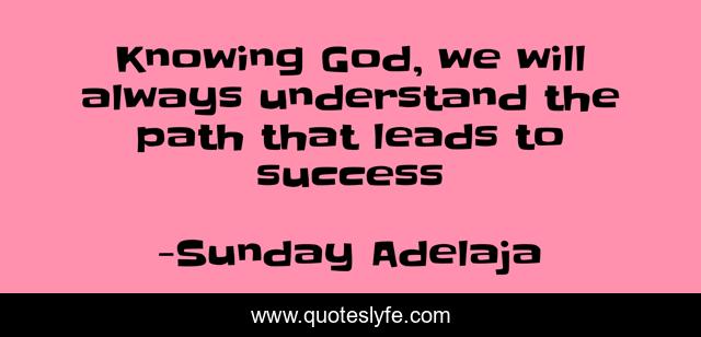 This page presents the quote "Knowing God, we will always understand the path that leads to success". Author of this quote is Sunday Adelaja. This quote is about knowing, paths, money, success, lead, prosperity, always, riches, understand,.