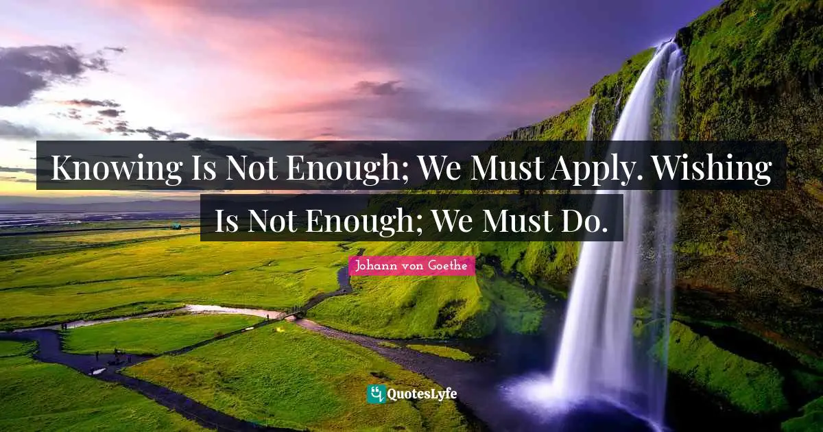 "Johann von Goethe Quotes." Quoteslyfe.com, 2025. Sat. 06 Dec. 2025. <https://www.quoteslyfe.com/quote/Knowing-Is-Not-Enough-We-Must-Apply-266253>.