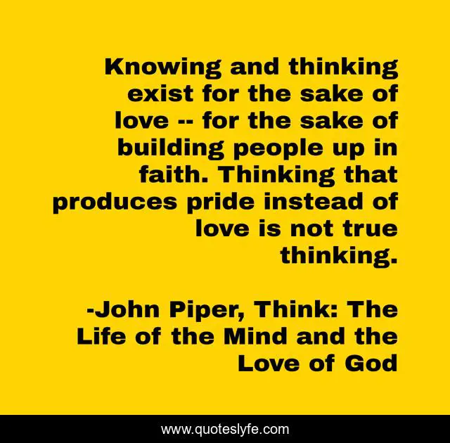 This page presents the quote "Knowing and thinking exist for the sake of love -- for the sake of building people up in faith. Thinking that produces pride instead of love is not true thinking.". Author of this quote is John Piper, Think: The Life of the Mind and the Love of God. This quote is about thinking, pride, love, affection, humility,.