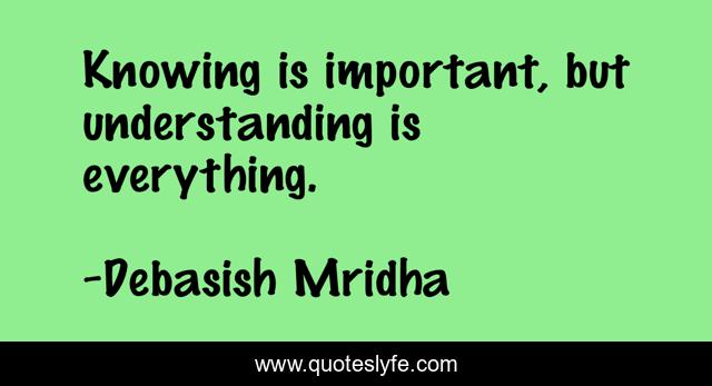 "Debasish Mridha Quotes." Quoteslyfe.com, 2025. Sat. 06 Dec. 2025. <https://www.quoteslyfe.com/quote/Knowing-is-important-but-understanding-is-everything-136040>.