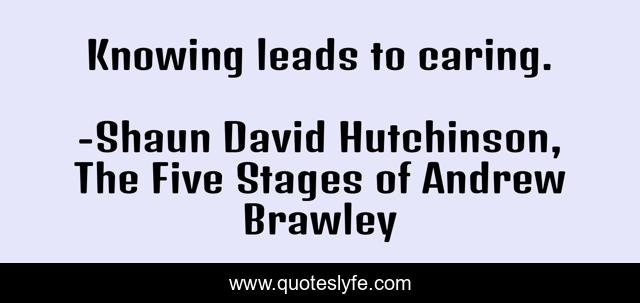 "Shaun David Hutchinson, The Five Stages of Andrew Brawley Quotes." Quoteslyfe.com, 2025. Fri. 05 Dec. 2025. <https://www.quoteslyfe.com/quote/Knowing-leads-to-caring-30744>.
