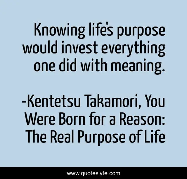 "Kentetsu Takamori, You Were Born for a Reason: The Real Purpose of Life Quotes." Quoteslyfe.com, 2025. Sat. 06 Dec. 2025. <https://www.quoteslyfe.com/quote/Knowing-life-s-purpose-would-invest-everything-195090>.