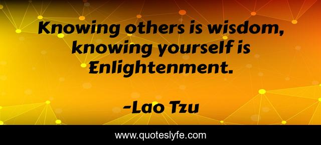 This page presents the quote "Knowing others is wisdom, knowing yourself is Enlightenment.". Author of this quote is Lao Tzu. This quote is about enlightenment, yourself,.