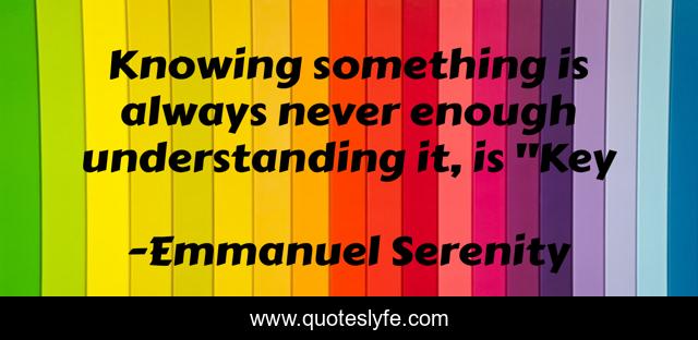 This page presents the quote "Knowing something is always never enough understanding it, is "Key". Author of this quote is Emmanuel Serenity. .