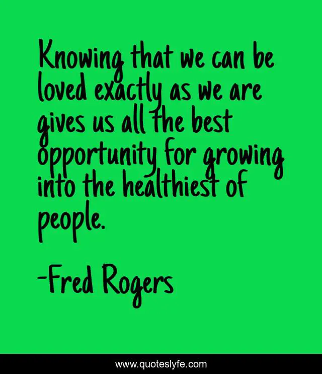 This page presents the quote "Knowing that we can be loved exactly as we are gives us all the best opportunity for growing into the healthiest of people.". Author of this quote is Fred Rogers. This quote is about health, opportunity, people,.