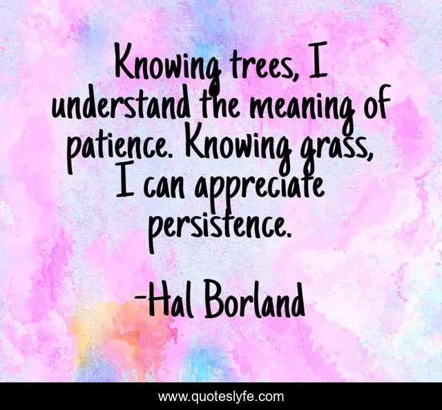 This page presents the quote "Knowing trees, I understand the meaning of patience. Knowing grass, I can appreciate persistence.". Author of this quote is Hal Borland. This quote is about patience, persistence,.