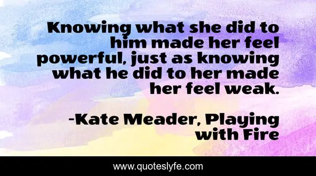 "Kate Meader, Playing with Fire Quotes." Quoteslyfe.com, 2025. Mon. 08 Dec. 2025. <https://www.quoteslyfe.com/quote/Knowing-what-she-did-to-him-made-104602>.