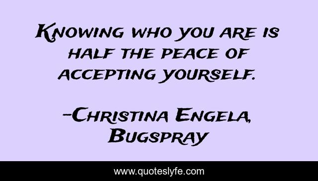 This page presents the quote "Knowing who you are is half the peace of accepting yourself.". Author of this quote is Christina Engela, Bugspray. This quote is about knowing, accepting, half, peace, yourself,.