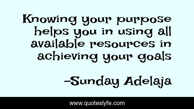 This page presents the quote "Knowing your purpose helps you in using all available resources in achieving your goals". Author of this quote is Sunday Adelaja. This quote is about knowledge, achievement, ignorance, goals, resources, purpose,.