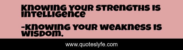 This page presents the quote "Knowing your strengths is intelligence". Author of this quote is knowing your weakness is wisdom.. .
