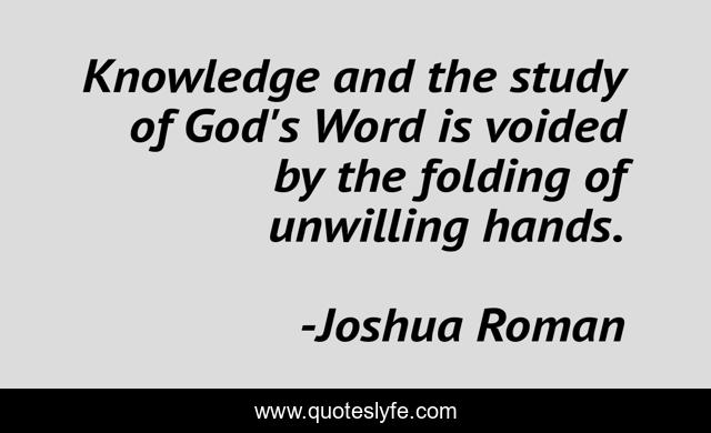 This page presents the quote "Knowledge and the study of God's Word is voided by the folding of unwilling hands.". Author of this quote is Joshua Roman. This quote is about christian, spiritual, religious, spirituality,.