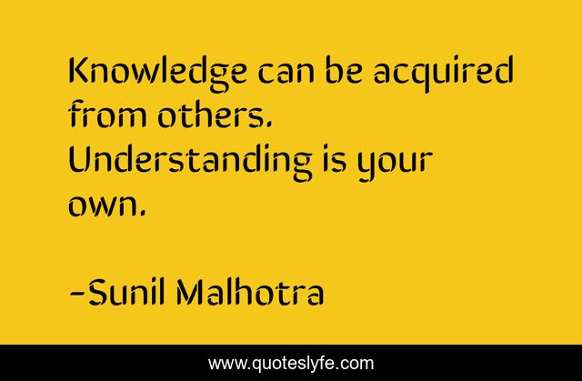 This page presents the quote "Knowledge can be acquired from others. Understanding is your own.". Author of this quote is Sunil Malhotra. .