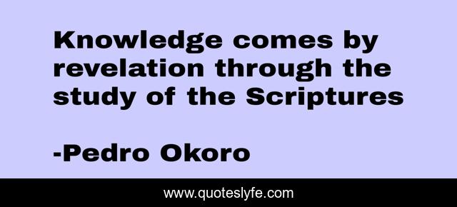 This page presents the quote "Knowledge comes by revelation through the study of the Scriptures". Author of this quote is Pedro Okoro. This quote is about spirituality, spiritual-development, spiritual-warfare,.