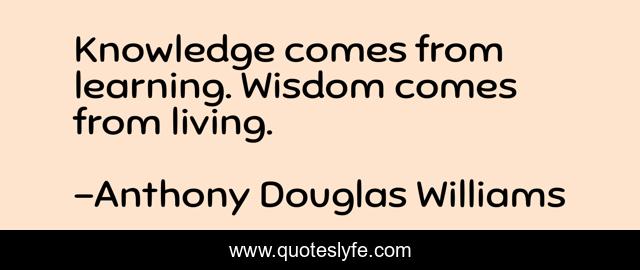 This page presents the quote "Knowledge comes from learning. Wisdom comes from living.". Author of this quote is Anthony Douglas Williams. .