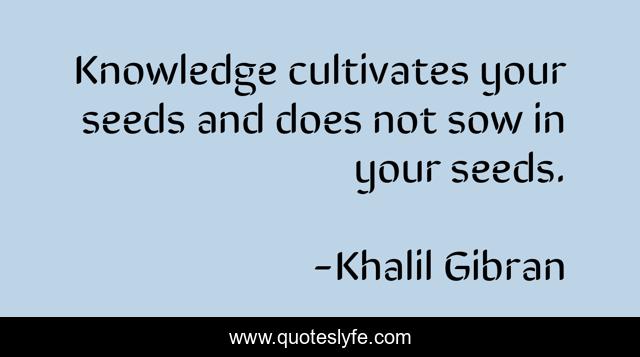 This page presents the quote "Knowledge cultivates your seeds and does not sow in your seeds.". Author of this quote is Khalil Gibran. This quote is about seeds, your, sow,.