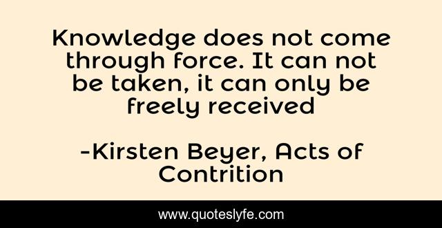 "Kirsten Beyer, Acts of Contrition Quotes." Quoteslyfe.com, 2025. Sat. 06 Dec. 2025. <https://www.quoteslyfe.com/quote/Knowledge-does-not-come-through-force-It-215524>.