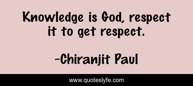 This page presents the quote "Knowledge is God, respect it to get respect.". Author of this quote is Chiranjit Paul. This quote is about knowledge-teaching, knowledge-power, knowledge, knowledge-of-people,.