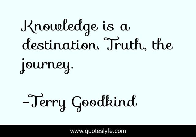 "Terry Goodkind Quotes." Quoteslyfe.com, 2025. Fri. 05 Dec. 2025. <https://www.quoteslyfe.com/quote/Knowledge-is-a-destination-Truth-the-journey-9099>.