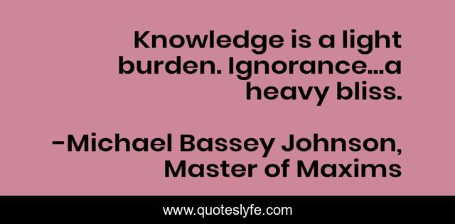 "Michael Bassey Johnson, Master of Maxims Quotes." Quoteslyfe.com, 2025. Fri. 05 Dec. 2025. <https://www.quoteslyfe.com/quote/Knowledge-is-a-light-burden-Ignorance-a-31593>.