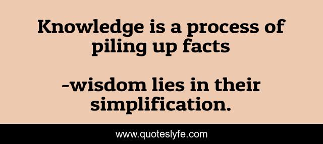 "wisdom lies in their simplification. Quotes." Quoteslyfe.com, 2025. Sat. 06 Dec. 2025. <https://www.quoteslyfe.com/quote/Knowledge-is-a-process-of-piling-up-134555>.