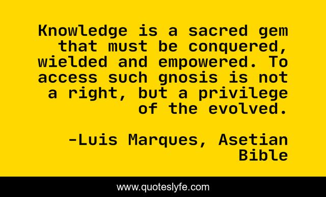 "Luis Marques, Asetian Bible Quotes." Quoteslyfe.com, 2025. Fri. 05 Dec. 2025. <https://www.quoteslyfe.com/quote/Knowledge-is-a-sacred-gem-that-must-134077>.