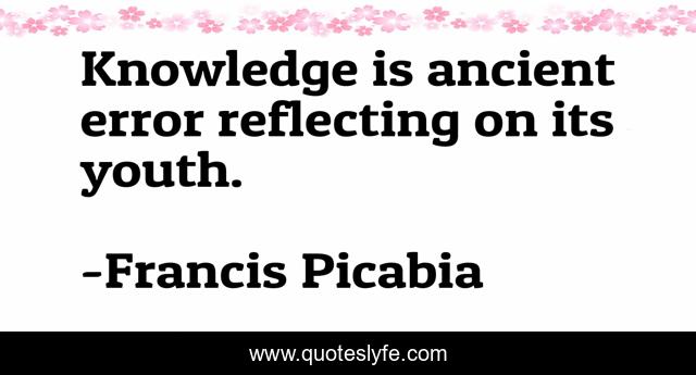 This page presents the quote "Knowledge is ancient error reflecting on its youth.". Author of this quote is Francis Picabia. This quote is about youth, reflecting, error,.