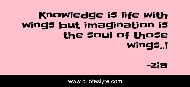This page presents the quote "Knowledge is life with wings but imagination is the soul of those wings..!". Author of this quote is zia. This quote is about imagination, knowledge,.